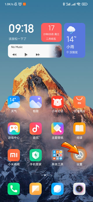 1、红米手机恢复出厂设置首先需要点击打开桌面上的“设置”图标。