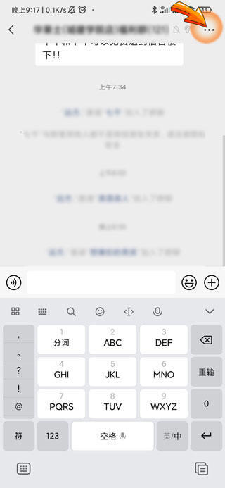 3、进入聊天界面后点击右上角“三点”符号。