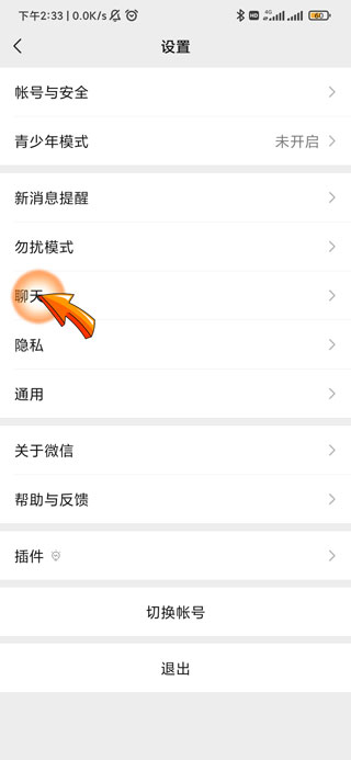 3、进入设置页面后点击“聊天”选项。