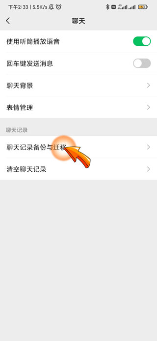4、之后点击聊天页面中的“聊天记录备份与迁移”选项。