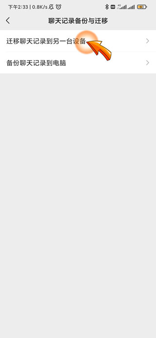 5、最后点击页面顶部的“迁移聊天记录到另一台设备”选项即可进行同步。