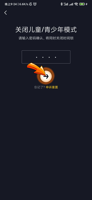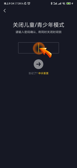 4、最后点击下方的“箭头”图标即可关闭青少年模式。