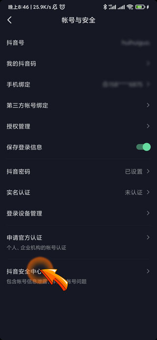 5、再点击页面底部的|“抖音安全中心”选项。