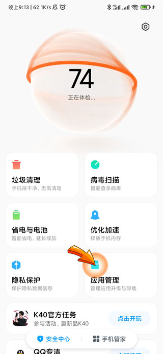 2、然后点击“应用管理”选项。