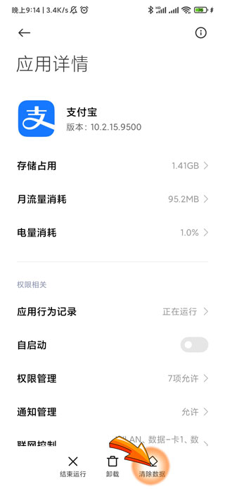 支付宝打不开可能是手机当前的运行内存不足,此时需要将其它应用关闭后再尝试打开,或者将手机进行重启,防止手机出现短暂性的故障,另外支付宝应用文件出现坏也会导致无法打开,应该支付宝数据清理后再尝试打开。