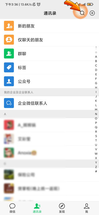 1、微信电子健康卡申领首先需要打开微信APP,点击右上角“放大镜”图标。