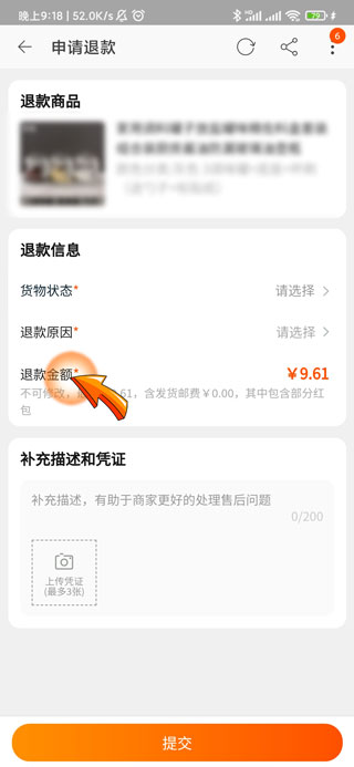 6、最后点击页面中部的“退款金额”选项即可进行修改。