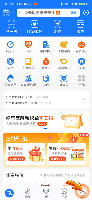 1、支付宝注销账号首先需要打开支付宝APP,点击右下角“我的”图标。