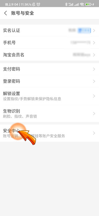 4、之后点击账号与安全页面底部的“安全中心”选项。