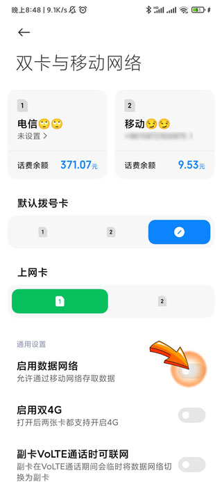抖音显示网络错误说明软件无法连接到网络,可能是手机网络出现短暂性的波动,此时需要打开桌面上的“设置”图标,然后点击“双卡与移动网络”选项,之后将“启用数据网络”关闭,最后再重新将其打开。