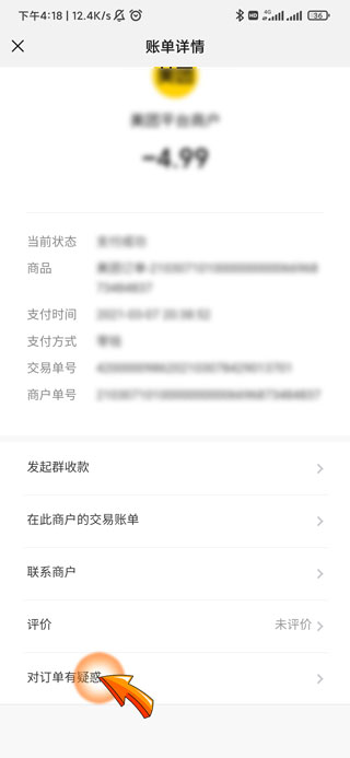 6、最后点击页面底部的“对订单有疑惑”选项即可。