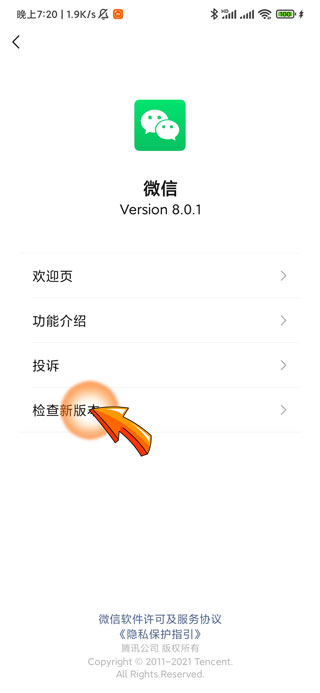 微信突然变卡了可能是版本过低导致的软件故障,首先打开微信APP,点击右下角的“我”的图标,然后点击“设置”选项,之后点击设置页面中的“关于微信”选项,最后点击页面下方的“检查新版本”选项即可。