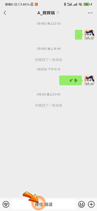 4、最后长按页面下方的“按住说话”选项即可发送语音。