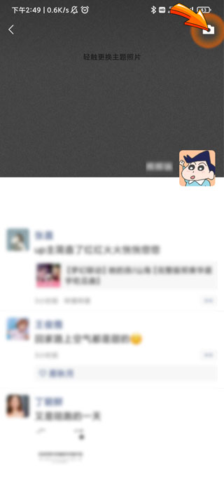 3、进入朋友圈页面后,点击右上角的“相机”图标。