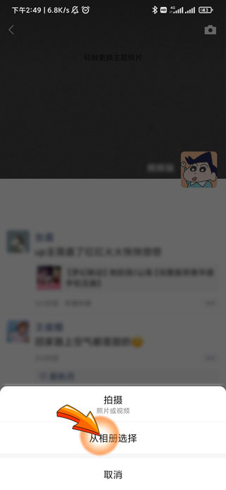 4、之后点击页面底部的“从相册选择”选项,选择需要发表的gif图片。