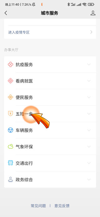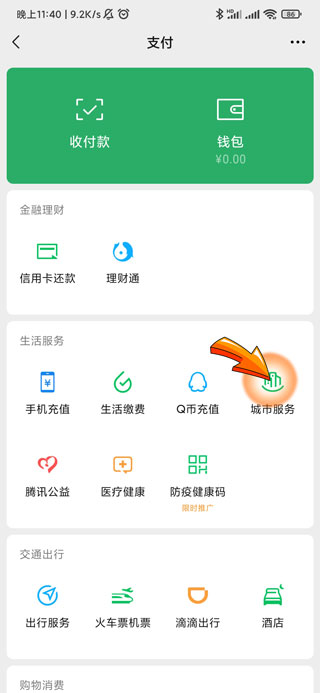 3、进入支付页面后,点击“城市服务”图标。