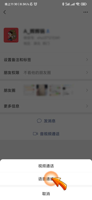 3、最后点击下方弹出页面中的“语音通话”选项即可。