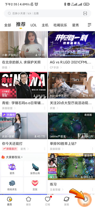 1、虎牙更换头像首先需要打开虎牙APP,点击页面右下角的“我的”图标。