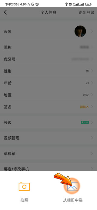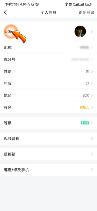 虎牙更换头像的步骤
