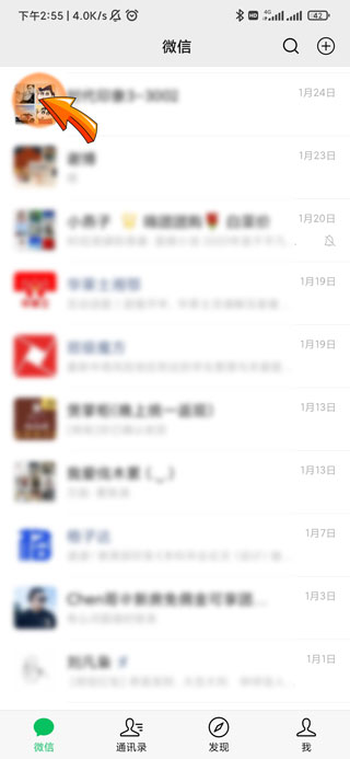 1、微信屏蔽群消息首先需要打开微信APP,找到并点击群聊“头像”图标。