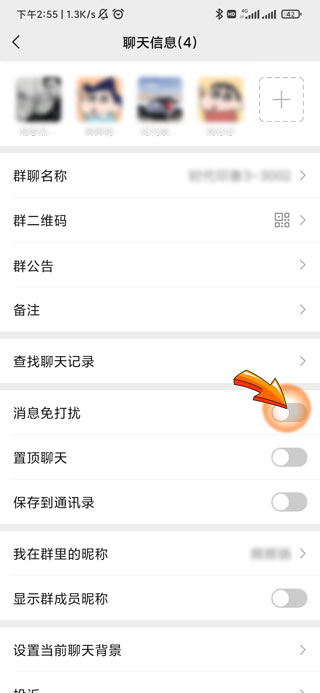 3、最后点击打开“消息免打扰”右侧的开关按钮即可。