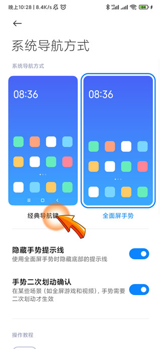 4、最后点击“经典导航键”选项即可使首先下方出现三个按键。