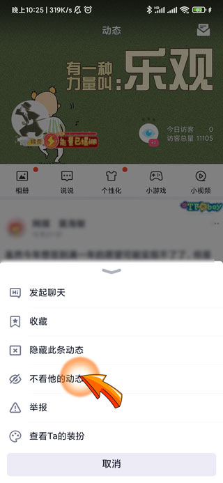 屏蔽所有人的qq空间动态需要依次设置不看对方动态,首先打开QQAPP,点击右下角的“动态”图标,然后点击对方动态内容右上角的“三点”符号,最后点击弹出窗口中的“不看他的动态”选项即可。