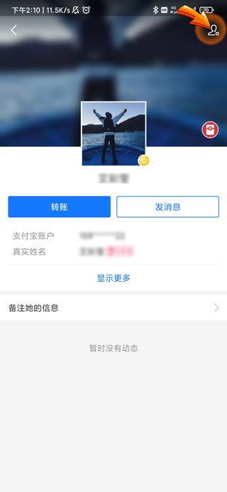 4、进入对方主页后,点击右上角的“人像”设置图标。