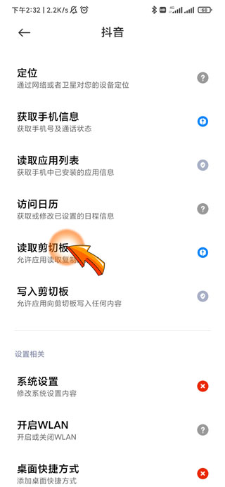抖音读取剪切板权限的设置步骤