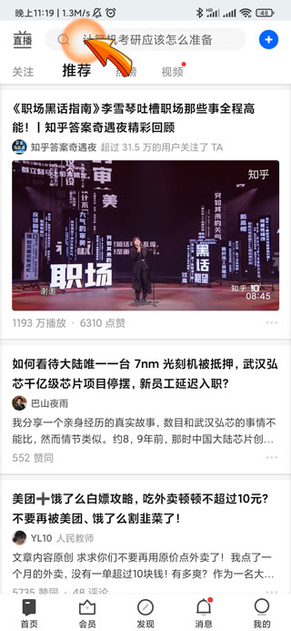2、然后点击知乎首页上方的“搜索栏”图标。