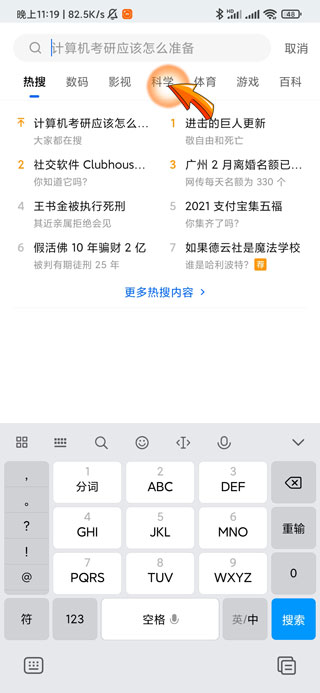 3、同时可以选择搜索栏下方的内容分类,例如点击“科学”选项。