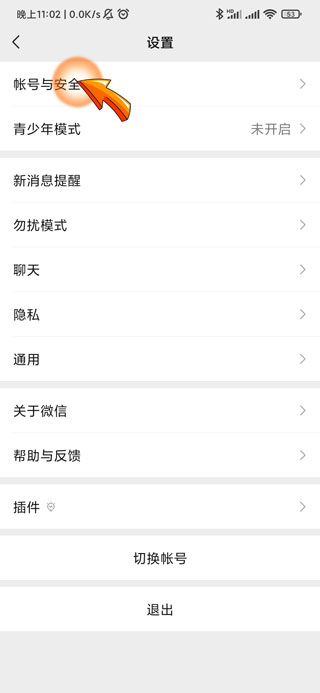 3、进入设置页面后,点击页面顶部的“账号与安全”选项。