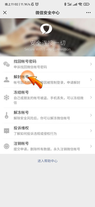 5、最后点击“解封账号”根据步骤进行解封即可。