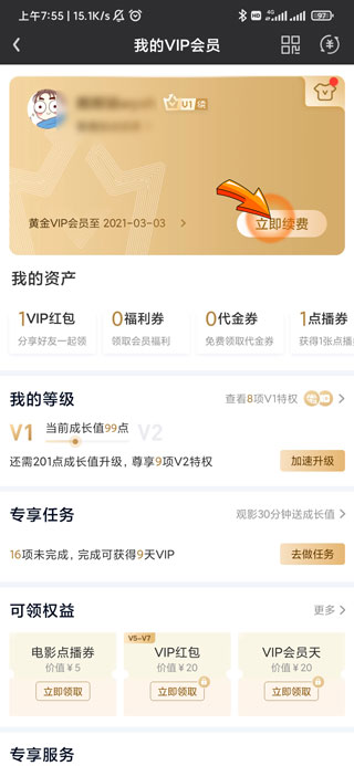 2、然后点击头像下方的“黄金VIP会员”选项。
