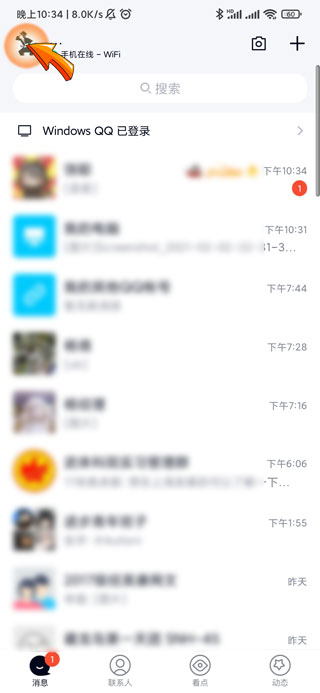 1、QQ设置成手机自带字体首先需要打开QQAPP,点击首页左上角的“头像”图标。