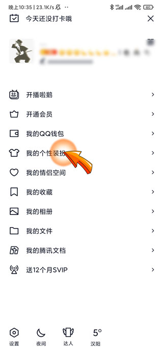 2、此时页面左方会弹出一个界面,点击其中的“我的个性装扮”选项。