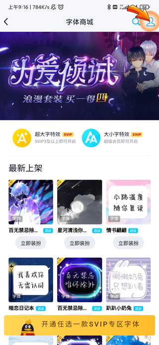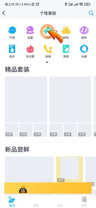 3、然后点击个性装扮页面中的“字体”图标。