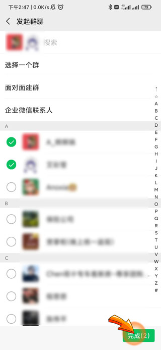 3、选择好群成员后,点击右下角的“完成”选项即可。