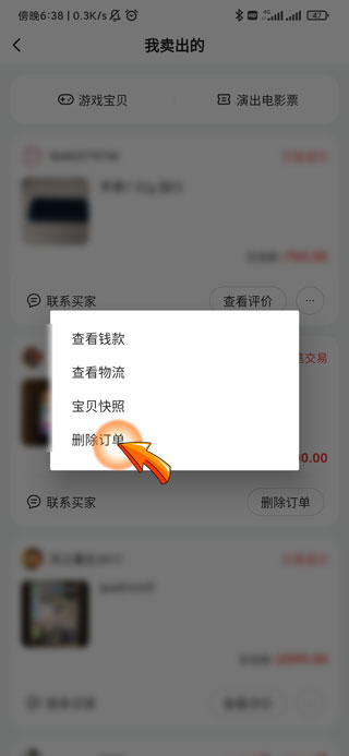 闲鱼删除订单的步骤