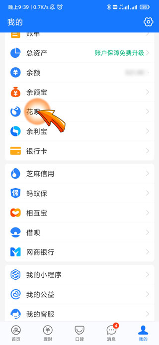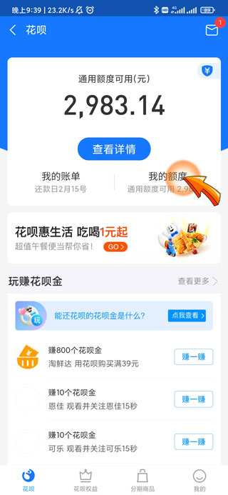 1、支付宝花呗下调额度首先需要打开支付宝APP,点击页面右下角的“我的”图标。