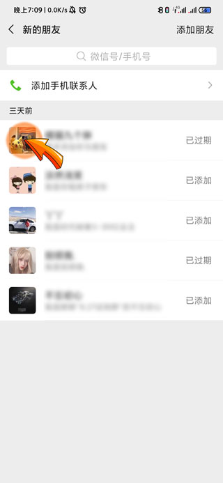 微信添加已过期的人需要打开微信APP,点击页面中的“新的朋友”选项,然后点击需要添加朋友的“头像”图标,最后点击信息中的“回复”选项,即可让对方重新添加,或者询问对方的微信号再进行添加。