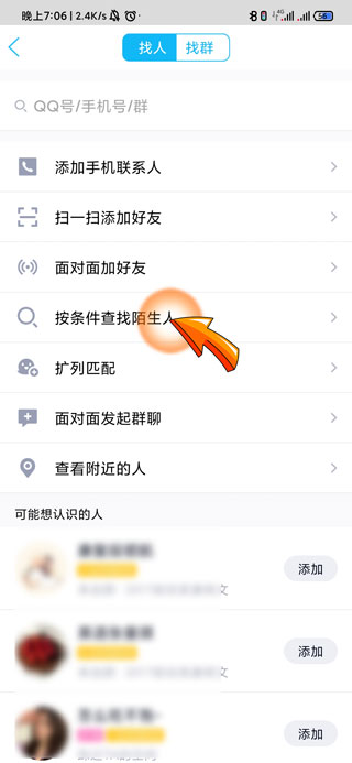 qq添加陌生人的步骤