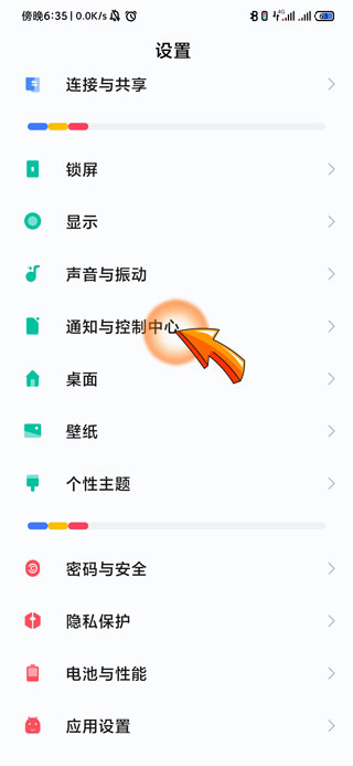 2、进入设置页面后,点击“通知与控制中心”选项。