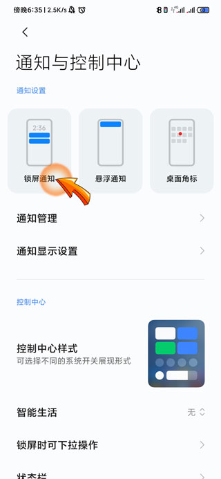 3、然后点击通知设置下方的“锁屏通知”选项。