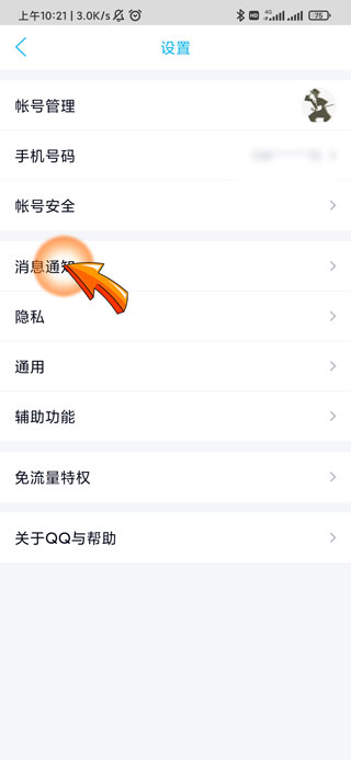 3、进入设置页面后,点击“消息通知”选项。