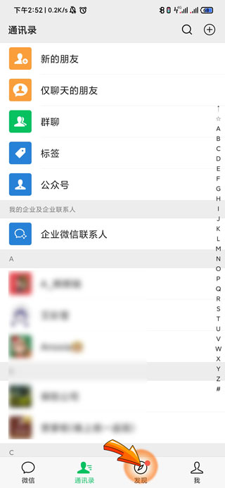 1、微信打开附近的人首先需要打开微信APP,点击首页下方的“发现”选项。