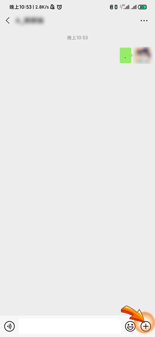 2、进入与对方的聊天界面后,点击页面右下角的“加号”图标。