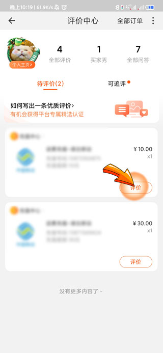 3、最后点击订单右下角的“评价”选项,即可进行好评。