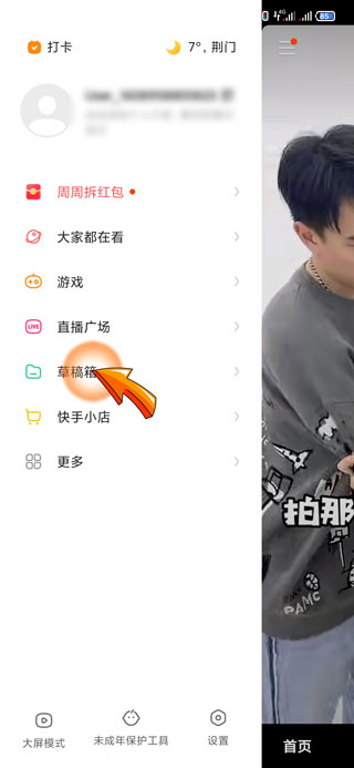 快手无法关闭草稿箱,快手打开草稿箱需要打开快手APP,然后点击页面左上角的“三横”符号,之后点击弹出页面中的“草稿箱”选项,同时也可以点击其中的“发布作品”进行作品生产。