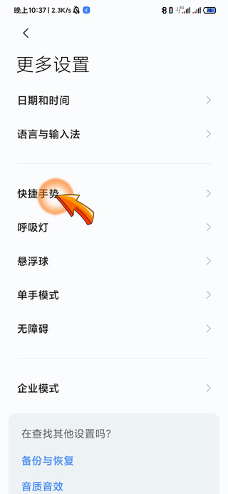 手机截屏功能是手机系统自带功能,不需要进行恢复,但是可以进行设置,首先打开桌面上的“设置”图标,然后点击“更多设置”选项,之后点击“快捷手势”选项,最后点击“截屏”选项即可设置截屏功能。